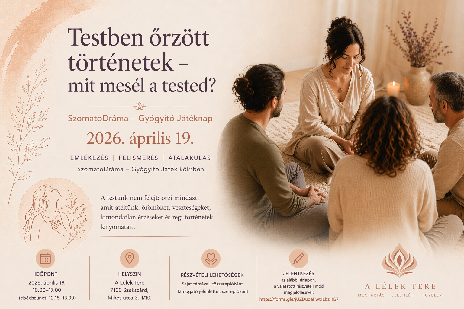 Bővebb leírás, résztvevői visszajelzések: www.lelektere.hu/szomatodrama-jatek/